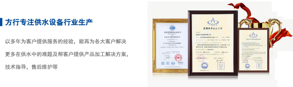 鹽城方行集團有限公司創(chuàng)建于一九七七年,四十多年來,在各級領導、國家行業(yè)協(xié)會和大專院校的大力支持幫助下,現(xiàn)已發(fā)展成為一家集研發(fā)、設計、生產、銷售、安裝、服務于一體的給排水設備企業(yè)。產品優(yōu)良,注重品牌。本公司先后榮獲“明星企業(yè)”、“中國鄉(xiāng)鎮(zhèn)明星企業(yè)”、“中國馳名品牌”等榮譽稱號。“方行”牌玻璃鋼夾砂管道、水箱被江蘇省建設廳指定為推廣產品;污水處理設備被專家評定為國家級新產品;方行牌玻璃鋼夾砂管道、玻璃鋼貯罐、一體化預制泵站、生活、消防箱泵一體化、污水處理設備、玻璃鋼水箱、不銹鋼水箱等產品先后被評為鹽城市名牌產品,江蘇省優(yōu)質產品,江蘇省名牌產品。公司技術和售后服務日臻完善。在同行中享有很高的知名度、美譽度。以信為本,廣拓業(yè)務。本公司始終恪守“持之以恒、誠信為本”的經營宗旨,持續(xù)發(fā)揚自強不息,順勢而上,趨利避弊,不斷推動產品發(fā)展,為我國的給排水工業(yè),為我們的民族工業(yè)品牌的發(fā)展而做出自己的貢獻。堅持革新,與時俱進。公司一貫跟隨社會的發(fā)展堅持不斷革新、嚴謹規(guī)劃、精益求精的質量方針。公司著重于環(huán)保新技術及給排水設備的創(chuàng)新研發(fā),已擁有多項國家專利技術。
